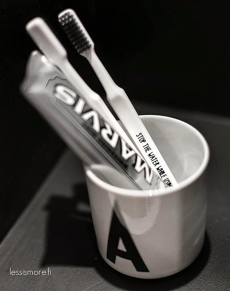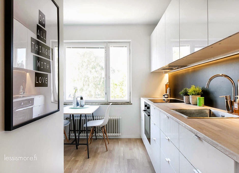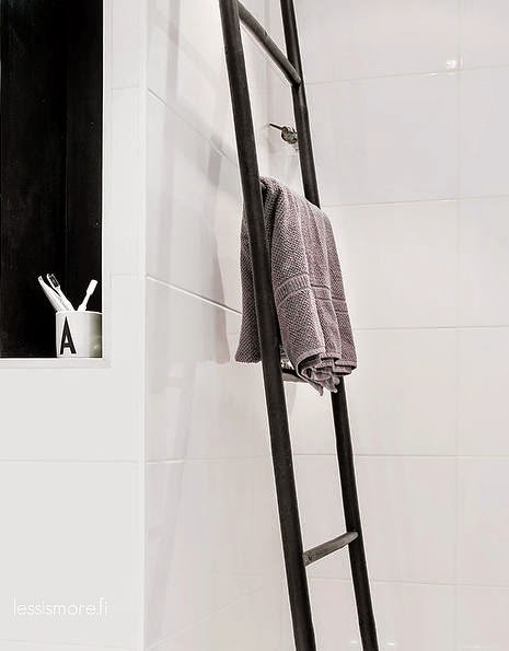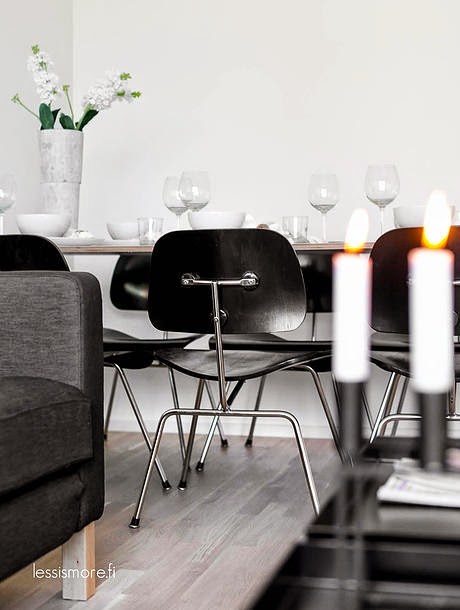 Du noir et blanc adouci par un peu de bois clair et quelques accessoires pastel.