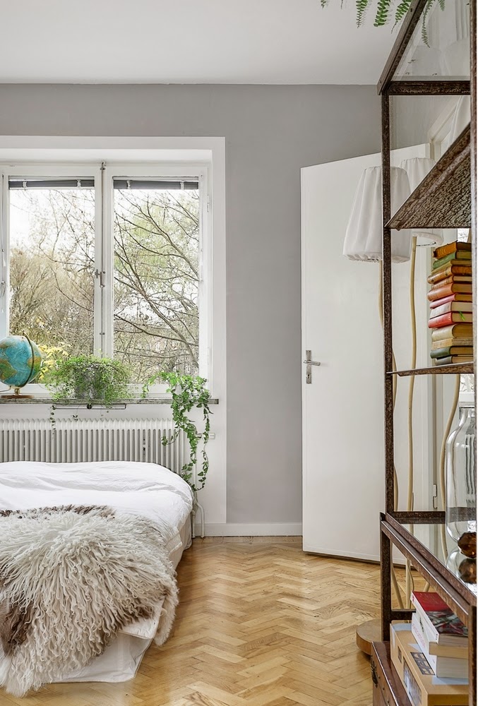 Un appartement de 42 m² et une pièce principale qui a choisit d'être une chambre avec un coin détente.