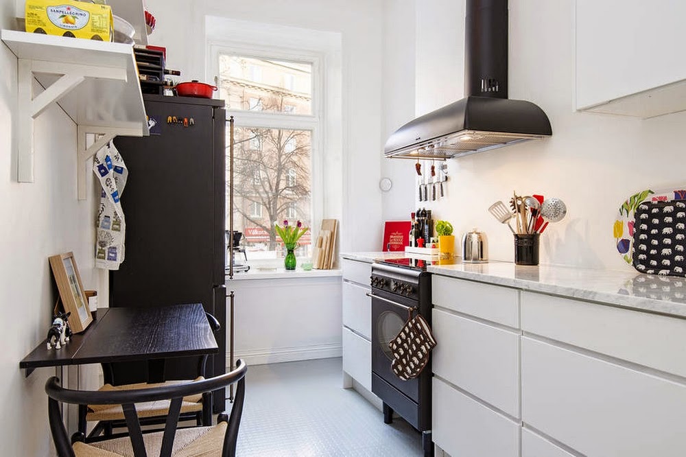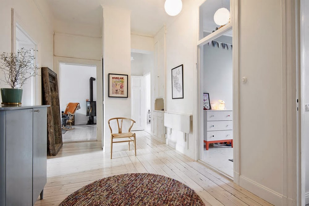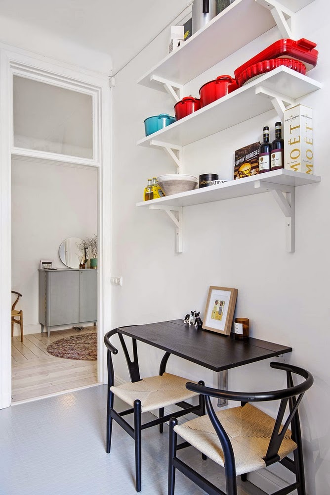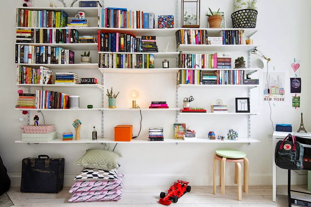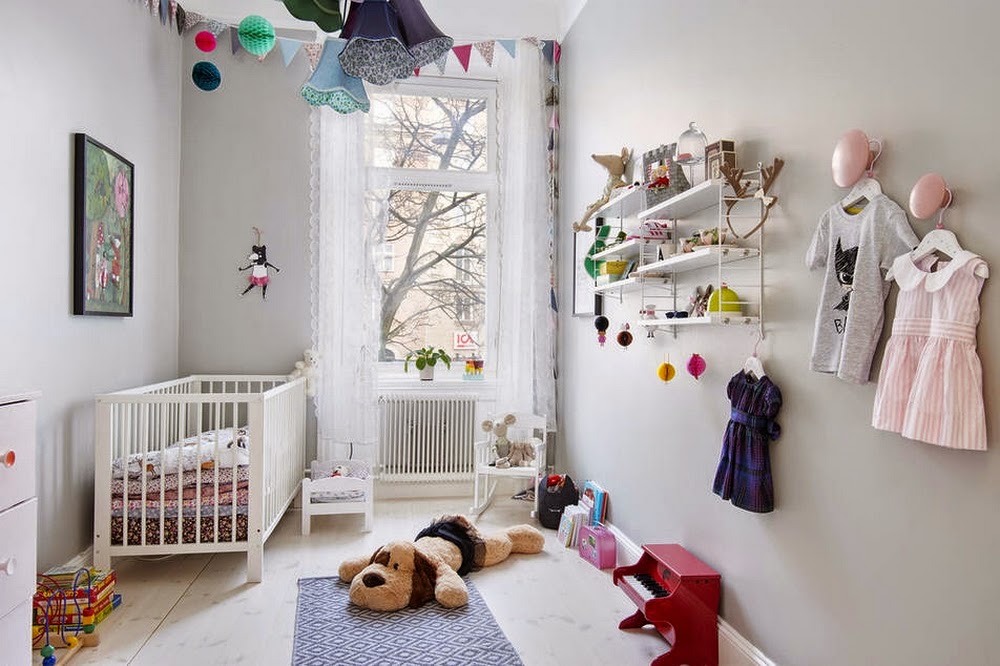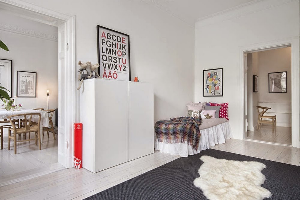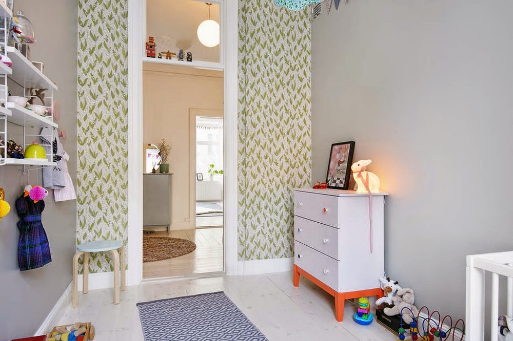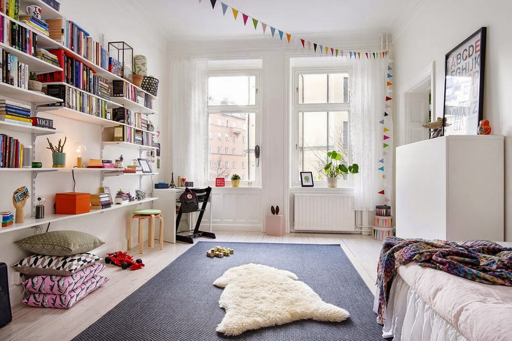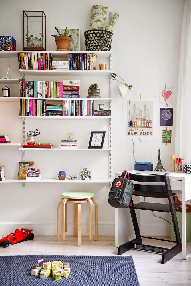 Un très agréable appartement familial ! Un peu de couleurs, dans la cuisine ou dans les chambres des enfants. Une bonne idée avec cette bibliothèque bien placée, les rayonnages du bas réservés aux petits et les plus hauts, aux parents.