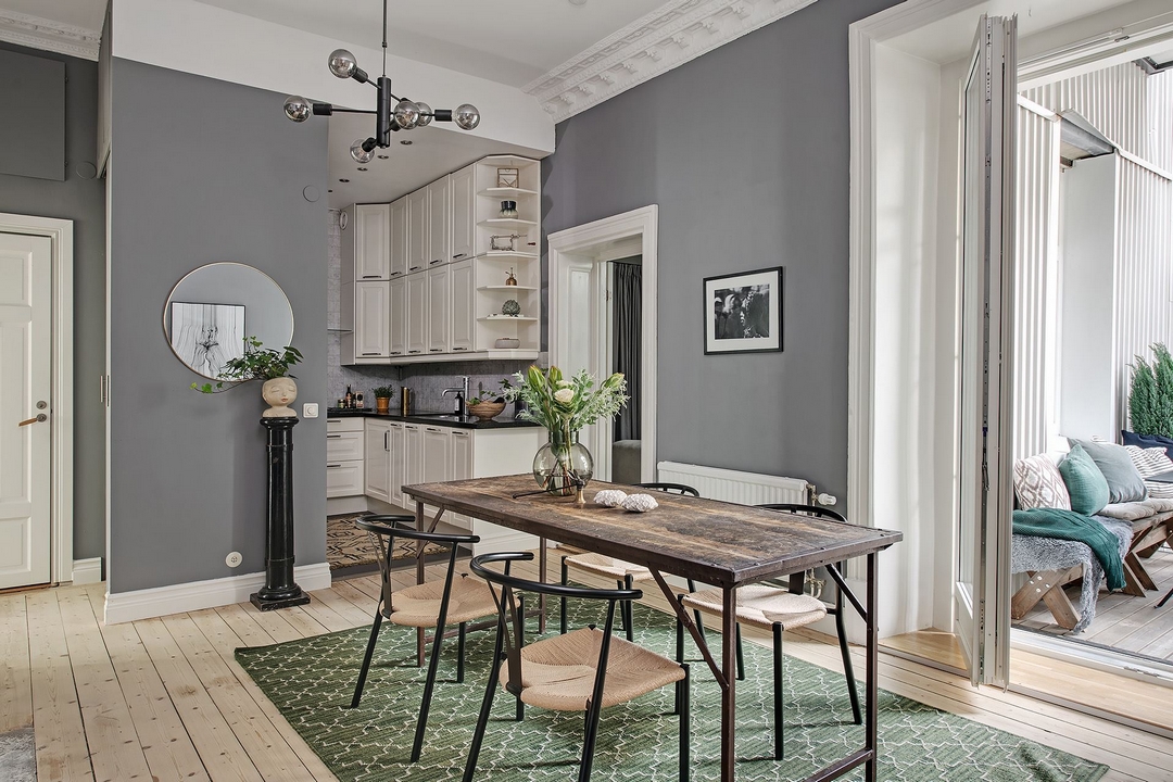 Avec quelques notes de couleurs assourdies, une décoration entre moderne et classique qui peut tout à fait être intemporelle.