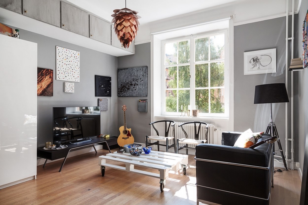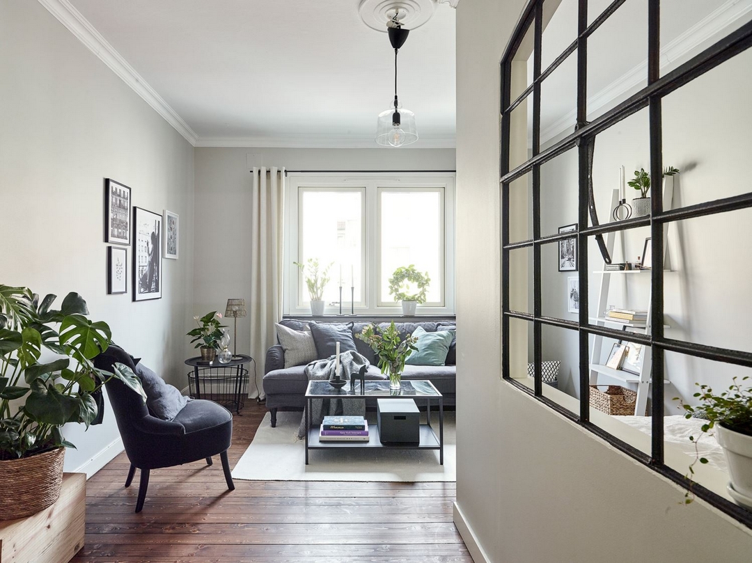 Un bon 40 m² pour un petit espace, ce n'est pas si mal, et avec ses teintes entre gris et beige, le lieu est apaisant et séduisant.